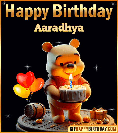 Make Aaradhya’s birthday extra sweet with this adorable Winnie the Pooh Happy Birthday GIF! 🍯🎂 Pooh brings his warm smile, balloons, and a delicious cake to celebrate with love and joy. Perfect for kids and fans of this classic bear — share the happiness today! 🎈💛