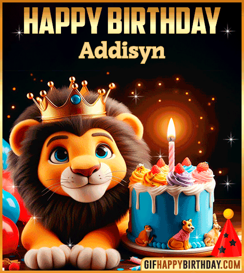 Celebrate Addisyn’s special day with this majestic Lion King–inspired Happy Birthday GIF! 🦁👑 A royal lion with a shining crown and birthday cake brings warmth, courage, and joy to the celebration. Perfect for sharing birthday wishes full of strength, happiness, and magic! 🎂