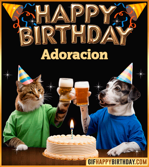 Make Adoracion’s day brighter with this adorable Happy Birthday GIF — a charming dog and cat dressed up for the party, ready to celebrate with joy, cake, and friendship! 🎉