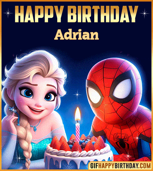 Make Adrian’s birthday magical with this one-of-a-kind Happy Birthday GIF! 🎂✨ Elsa and Spider-Man come together to share smiles, a sweet cake, and colorful energy. Perfect for kids and fans who love heroes and fairy-tale moments — share it to spread fun and happiness! 🎉