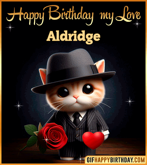 Surprise your special someone with this romantic Happy Birthday GIF! 💕🐾 A charming kitten dressed elegantly with a rose and heart sends warm, loving wishes to Aldridge. Perfect to express affection, sweetness, and deep love on their special day. 🌹