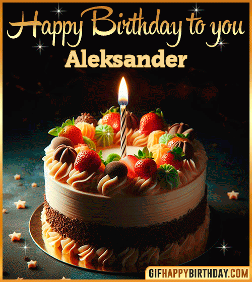 Celebrate Aleksander’s special day with this elegant Happy Birthday Cake GIF! 🎉🍰 A delicious layered cake topped with colorful sweets and a glowing candle — the perfect image to send heartfelt wishes full of joy, sweetness, and style. Great for sharing on social media or messages to brighten someone’s day! 💖