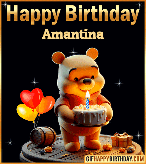 Make Amantina’s birthday extra sweet with this adorable Winnie the Pooh Happy Birthday GIF! 🍯🎂 Pooh brings his warm smile, balloons, and a delicious cake to celebrate with love and joy. Perfect for kids and fans of this classic bear — share the happiness today! 🎈💛
