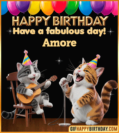Make Amore’s day brighter with this adorable Happy Birthday GIF — a charming dog and cat dressed up for the party, ready to celebrate with joy, cake, and friendship! 🎉