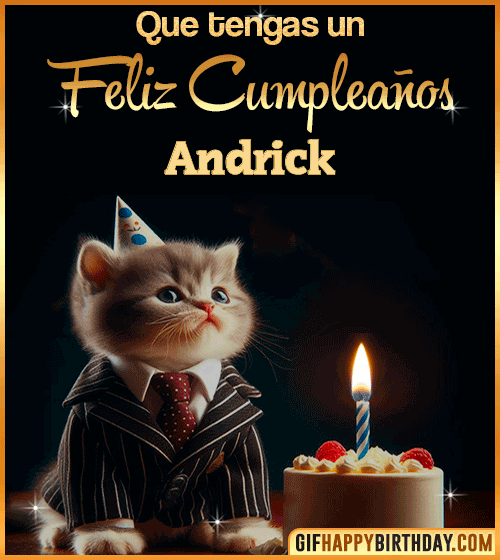 Celebrate Andrick’s special day with this elegant Happy Birthday GIF — a classy cat in a bow tie enjoying a birthday cake under warm lights. Perfect to share love, smiles, and birthday wishes! 🎂