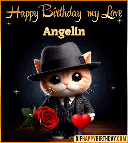 Surprise your special someone with this romantic Happy Birthday GIF! 💕🐾 A charming kitten dressed elegantly with a rose and heart sends warm, loving wishes to Angelin. Perfect to express affection, sweetness, and deep love on their special day. 🌹