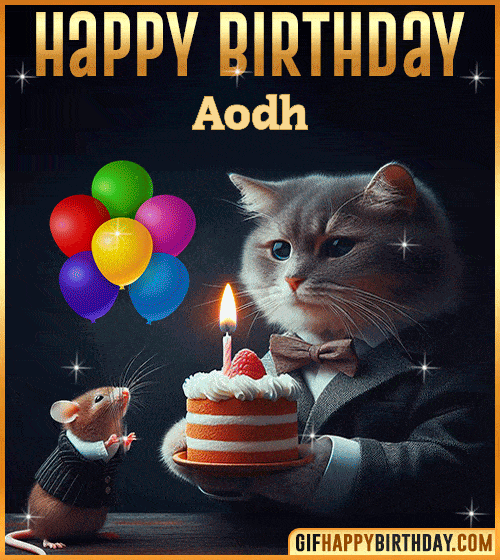 Celebrate Aodh’s birthday in a fun, creative and unforgettable way with our exclusive collection of Happy Birthday GIFs with names 🎉. Each animation is full of joy, color and life — discover adorable animals with cakes, funny dogs in party hats, sparkling balloons, and even Disney-style characters ready to spread smiles and good vibes 🎈💖.