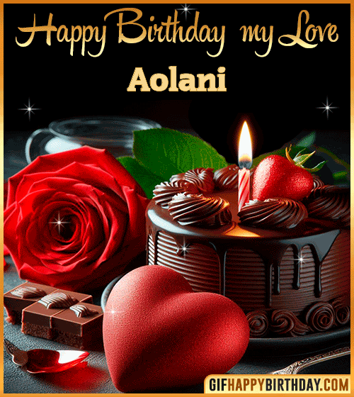 Make your special someone feel loved with this romantic Happy Birthday GIF! 💞🍰 A rich chocolate cake topped with strawberries and a glowing candle, beside a red rose and a heart — the perfect combination of sweetness and passion to say Happy Birthday, my love Aolani! 🌹✨ Ideal to share heartfelt wishes filled with romance and tenderness.