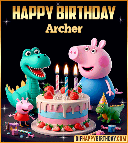 Bring smiles to Archer’s special day with this adorable Peppa Pig Happy Birthday GIF! 🐷🎂 Perfect for kids and Peppa fans, it shows Peppa and her friends celebrating around a delicious cake with balloons, gifts, and joy. A fun and colorful way to send happy wishes online! 🎉