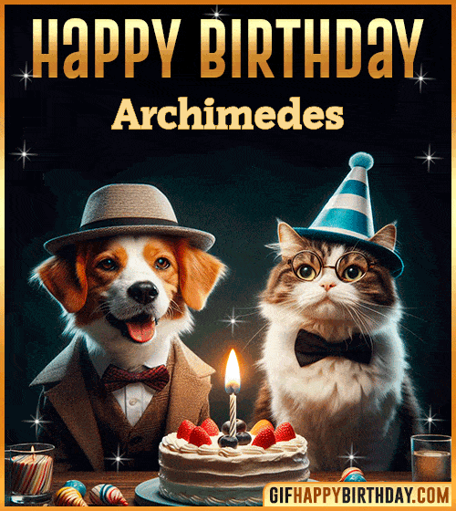 Make Archimedes’s day brighter with this adorable Happy Birthday GIF — a charming dog and cat dressed up for the party, ready to celebrate with joy, cake, and friendship! 🎉