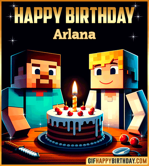 Celebrate Arlana’s special day with this awesome Minecraft Happy Birthday GIF! 🎂⛏️ Perfect for gamers and fans of the blocky world, this fun animation shows Minecraft characters enjoying a birthday cake and festive vibe. A great way to send creative and cheerful wishes online! 🎉💎