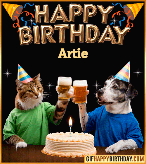 Make Artie’s day brighter with this adorable Happy Birthday GIF — a charming dog and cat dressed up for the party, ready to celebrate with joy, cake, and friendship! 🎉