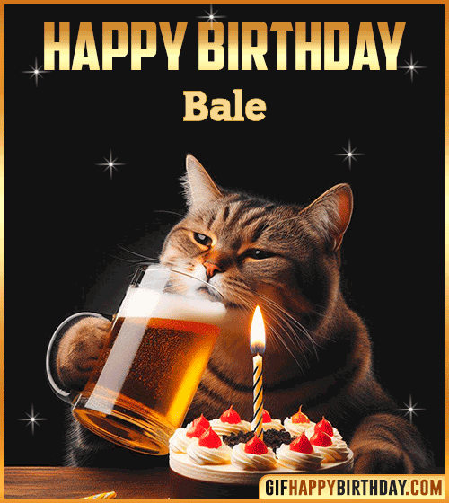 Cheers to Bale on their special day! 🍻🐱 This funny cat Happy Birthday GIF brings laughter and good vibes — a cool cat toasting with beer and cake to celebrate in style. Perfect for sharing humor, friendship, and a relaxed birthday mood. 🎂