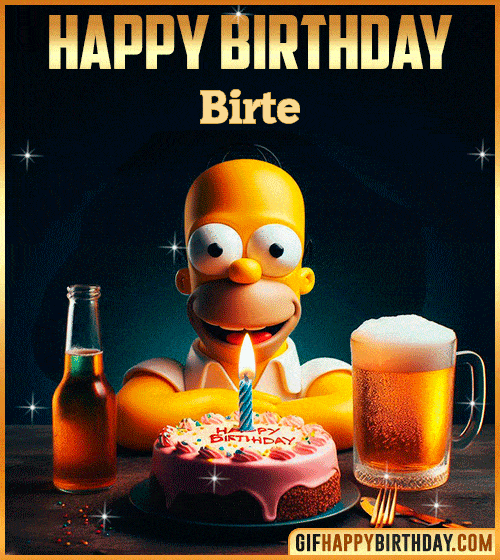 Celebrate Birte’s special day with laughter! This funny Happy Birthday GIF shows Homer Simpson enjoying cake and beer, making it the perfect way to send cheerful and playful birthday wishes. 🎂🍺😂