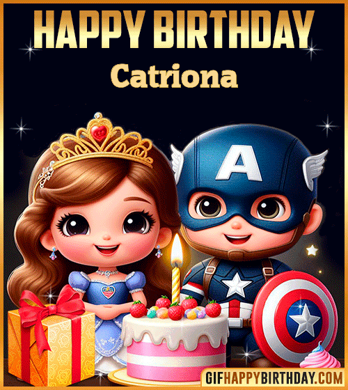 Bring smiles to Catriona’s special day with this adorable Happy Birthday GIF! 🎂💫 Captain America joins a sweet princess for a joyful celebration full of gifts, cake, and sparkle. Perfect for sharing fun birthday wishes with kids and superhero fans alike! 🎁