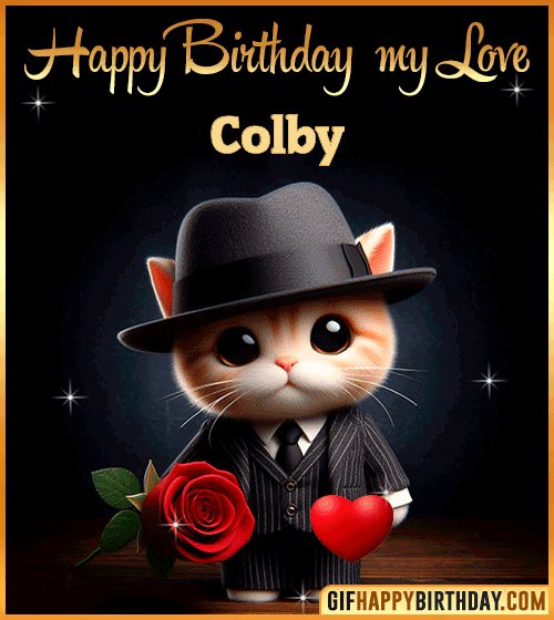Surprise your special someone with this romantic Happy Birthday GIF! 💕🐾 A charming kitten dressed elegantly with a rose and heart sends warm, loving wishes to Colby. Perfect to express affection, sweetness, and deep love on their special day. 🌹