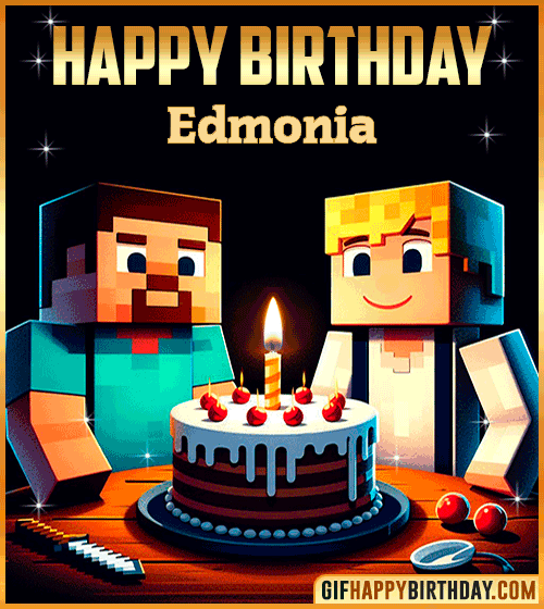 Celebrate Edmonia’s special day with this awesome Minecraft Happy Birthday GIF! 🎂⛏️ Perfect for gamers and fans of the blocky world, this fun animation shows Minecraft characters enjoying a birthday cake and festive vibe. A great way to send creative and cheerful wishes online! 🎉💎