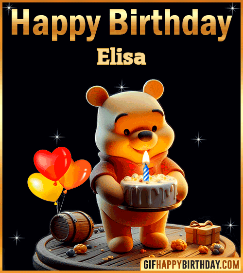 Make Elisa’s birthday extra sweet with this adorable Winnie the Pooh Happy Birthday GIF! 🍯🎂 Pooh brings his warm smile, balloons, and a delicious cake to celebrate with love and joy. Perfect for kids and fans of this classic bear — share the happiness today! 🎈💛