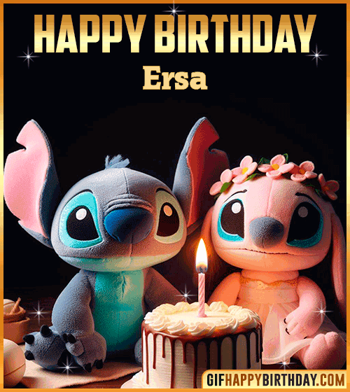 Make Ersa’s birthday extra special with this adorable Stitch and Angel Happy Birthday GIF! 💙🎂 The two beloved characters celebrate with a glowing candle and delicious cake — a perfect animated surprise to share your love and joy on social media or WhatsApp. 🌺✨