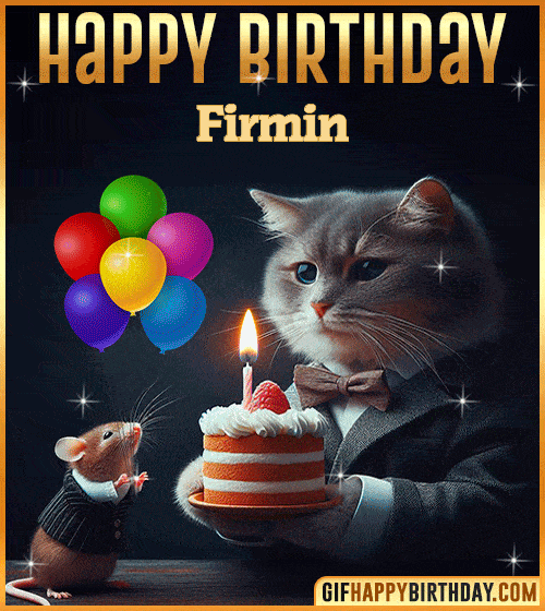 Make Firmin’s day brighter with this adorable Happy Birthday GIF — a charming dog and cat dressed up for the party, ready to celebrate with joy, cake, and friendship! 🎉