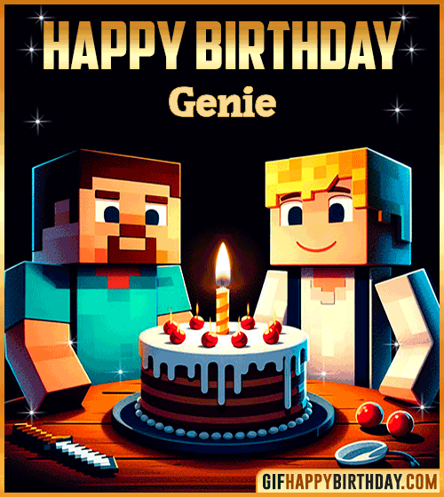 Celebrate Genie’s special day with this awesome Minecraft Happy Birthday GIF! 🎂⛏️ Perfect for gamers and fans of the blocky world, this fun animation shows Minecraft characters enjoying a birthday cake and festive vibe. A great way to send creative and cheerful wishes online! 🎉💎