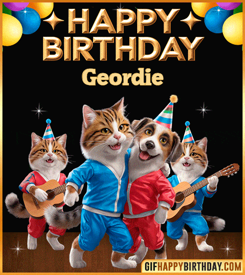 Make Geordie’s day brighter with this adorable Happy Birthday GIF — a charming dog and cat dressed up for the party, ready to celebrate with joy, cake, and friendship! 🎉