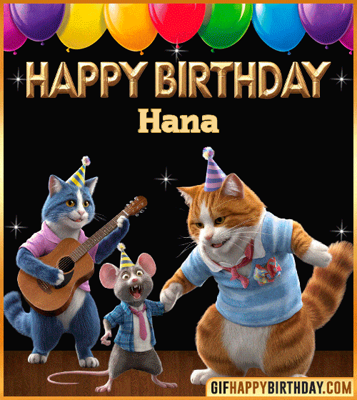 Celebrate Hana’s birthday in a fun, creative and unforgettable way with our exclusive collection of Happy Birthday GIFs with names 🎉. Each animation is full of joy, color and life — discover adorable animals with cakes, funny dogs in party hats, sparkling balloons, and even Disney-style characters ready to spread smiles and good vibes 🎈💖.