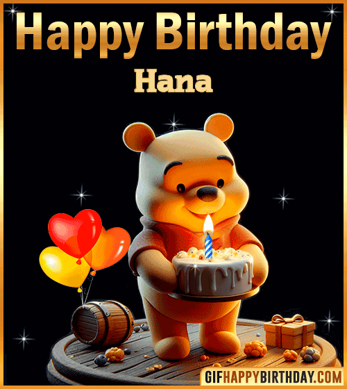 Make Hana’s birthday extra sweet with this adorable Winnie the Pooh Happy Birthday GIF! 🍯🎂 Pooh brings his warm smile, balloons, and a delicious cake to celebrate with love and joy. Perfect for kids and fans of this classic bear — share the happiness today! 🎈💛