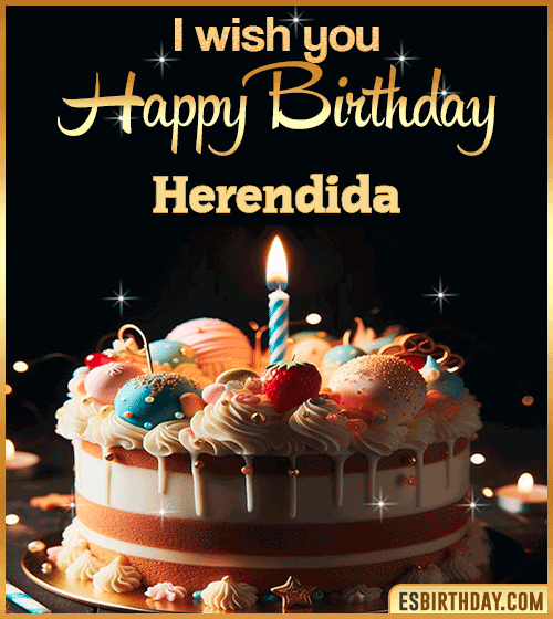 Celebrate Herendida’s special day with this elegant Happy Birthday Cake GIF! 🎉🍰 A delicious layered cake topped with colorful sweets and a glowing candle — the perfect image to send heartfelt wishes full of joy, sweetness, and style. Great for sharing on social media or messages to brighten someone’s day! 💖