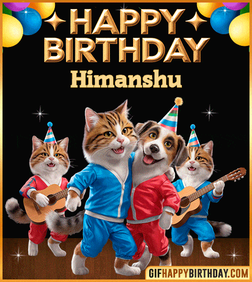 Make Himanshu’s day brighter with this adorable Happy Birthday GIF — a charming dog and cat dressed up for the party, ready to celebrate with joy, cake, and friendship! 🎉