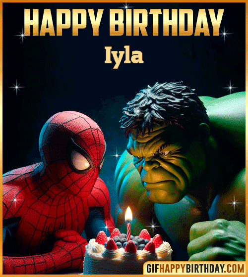 Make Iyla’s day heroic with this action-packed Happy Birthday GIF! 🕷💪 Spiderman and Hulk join forces to bring smiles, strength, and supercharged energy to the party. Perfect for fans of Marvel heroes and epic celebrations — let the fun power up like a true Avenger! 🎂