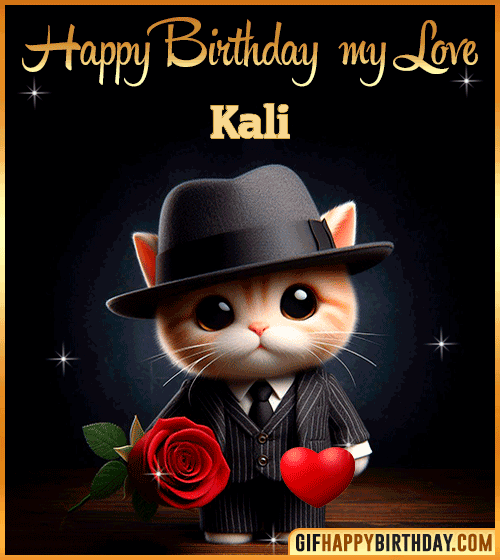 Surprise your special someone with this romantic Happy Birthday GIF! 💕🐾 A charming kitten dressed elegantly with a rose and heart sends warm, loving wishes to Kali. Perfect to express affection, sweetness, and deep love on their special day. 🌹