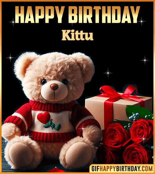 Send warm and cozy wishes to Kittu with this charming teddy bear Happy Birthday GIF! 🧸🎁 The cute bear in a red sweater sits beside a gift box and roses, creating the perfect blend of sweetness and love. Ideal for sharing tenderness, friendship, and heartfelt birthday vibes. ❤️