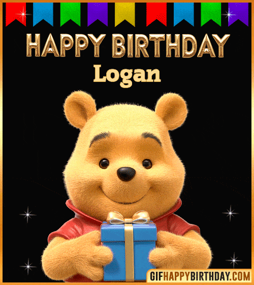 A cute and heartwarming animated GIF featuring Winnie the Pooh celebrating Logan’s special day! 🎈 The adorable bear smiles sweetly while holding a blue present, ready to share love, joy, and honey-sweet birthday wishes. Perfect for sending warm greetings filled with friendship and happiness. 🎁