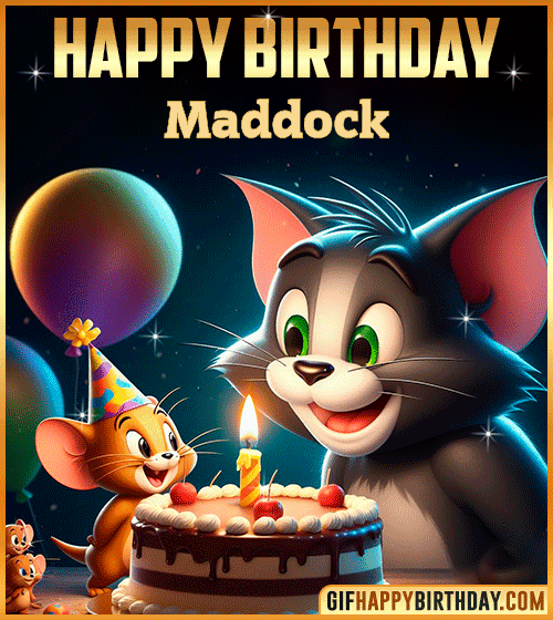 Celebrate Maddock’s special day with a touch of childhood nostalgia! 🎂 Tom and Jerry share cake, balloons, and laughter in this fun Happy Birthday GIF — perfect to spread joy on social media or WhatsApp. 🎉🐭