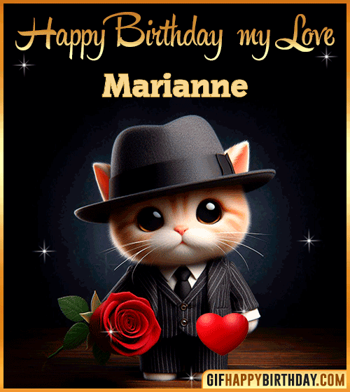 Surprise your special someone with this romantic Happy Birthday GIF! 💕🐾 A charming kitten dressed elegantly with a rose and heart sends warm, loving wishes to Marianne. Perfect to express affection, sweetness, and deep love on their special day. 🌹
