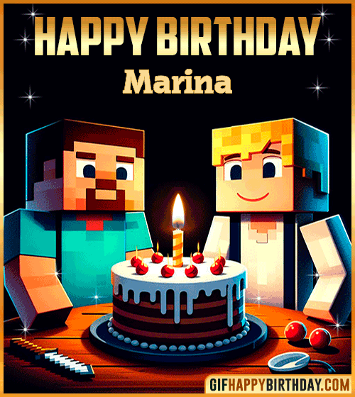 Celebrate Marina’s special day with this awesome Minecraft Happy Birthday GIF! 🎂⛏️ Perfect for gamers and fans of the blocky world, this fun animation shows Minecraft characters enjoying a birthday cake and festive vibe. A great way to send creative and cheerful wishes online! 🎉💎