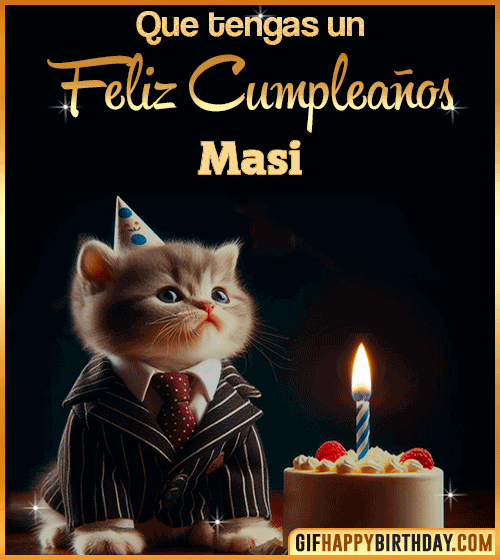 Celebrate Masi’s special day with this elegant Happy Birthday GIF — a classy cat in a bow tie enjoying a birthday cake under warm lights. Perfect to share love, smiles, and birthday wishes! 🎂