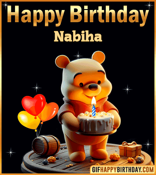 Make Nabiha’s birthday extra sweet with this adorable Winnie the Pooh Happy Birthday GIF! 🍯🎂 Pooh brings his warm smile, balloons, and a delicious cake to celebrate with love and joy. Perfect for kids and fans of this classic bear — share the happiness today! 🎈💛