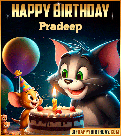 Celebrate Pradeep’s special day with a touch of childhood nostalgia! 🎂 Tom and Jerry share cake, balloons, and laughter in this fun Happy Birthday GIF — perfect to spread joy on social media or WhatsApp. 🎉🐭