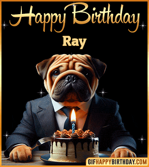 Make Ray’s day brighter with this adorable Happy Birthday GIF — a charming dog and cat dressed up for the party, ready to celebrate with joy, cake, and friendship! 🎉