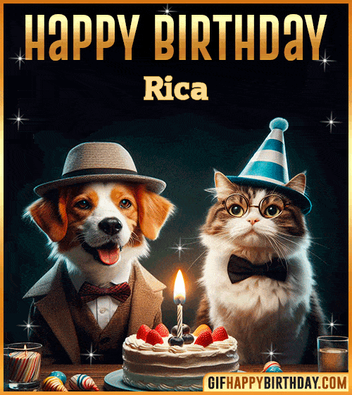 Make Rica’s day brighter with this adorable Happy Birthday GIF — a charming dog and cat dressed up for the party, ready to celebrate with joy, cake, and friendship! 🎉