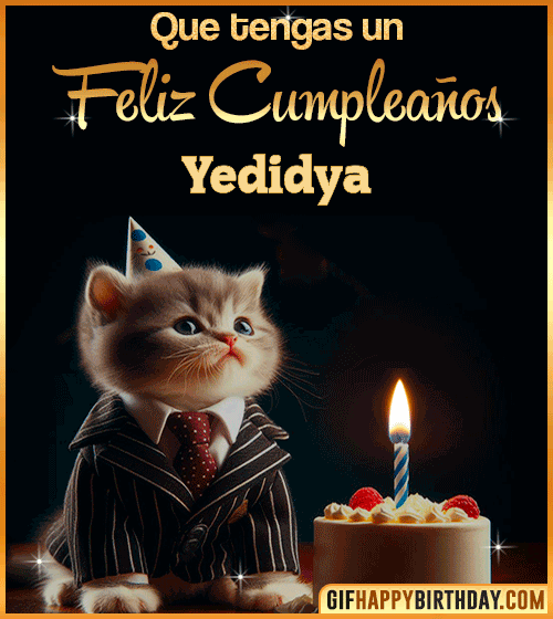 Celebrate Yedidya’s special day with this elegant Happy Birthday GIF — a classy cat in a bow tie enjoying a birthday cake under warm lights. Perfect to share love, smiles, and birthday wishes! 🎂